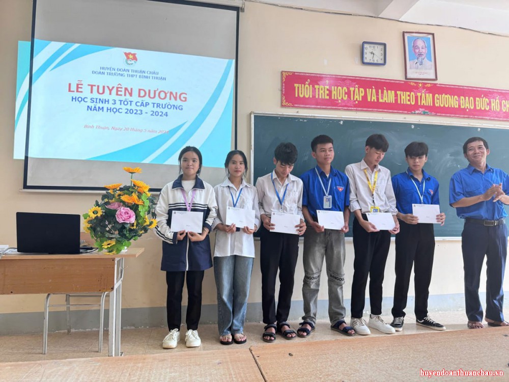 (Đoàn trường THPT Bình Thuận tuyên dương 06 em học sinh 3 tốt cấp trường)