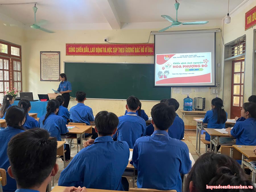 (Đoàn trường THPT Thuận Châu triển khai đội hình tình nguyện Hoa phượng đỏ 2024)