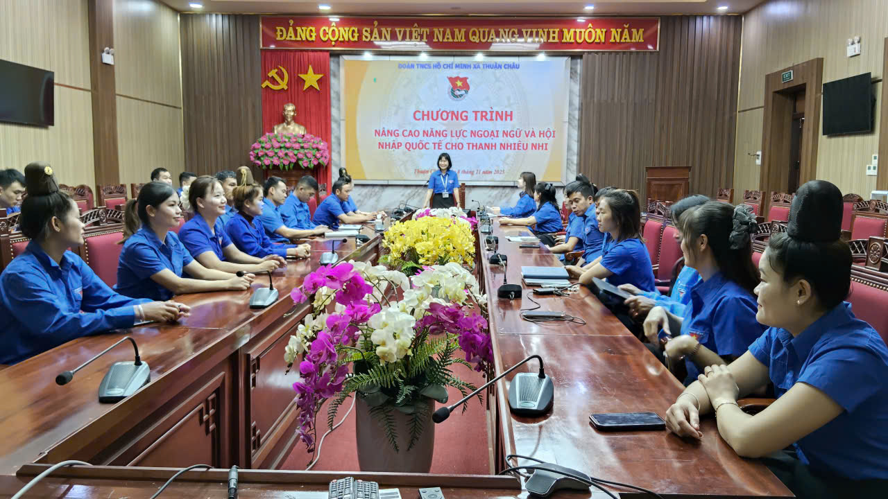 ĐOÀN XÃ THUẬN CHÂU TỔ CHỨC CHƯƠNG TRÌNH NÂNG CAO NĂNG LỰC NGOẠI NGỮ VÀ HỘI NHẬP QUỐC TẾ CHO ĐOÀN VIÊN ,THANH THIẾU NHI. ĐÃ THU HÚT HƠN 50 LƯỢT ĐOÀN VIÊN THANH NIÊN THAM GIA.