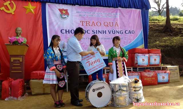 Nhằm sẻ chia một phần những khó khăn, thiếu thốn trong cuộc sống cùng thầy cô giáo và các em học sinh vùng cao. Chương trình trao quà cho các em học sinh vùng cao do Đoàn TNCS Hồ Chí Minh huyện Vĩnh Tường, tỉnh Vĩnh Phúc phối hợp với Ban Chấp hành Huyện đoàn Thuận Châu tổ chức tại xã Pá Lông. Đoàn đã trao tặng 590 chiếc áo khoác đồng phục mùa đông, hơn 1.000 cuốn vở viết cho học sinh 2 trường tiểu học và THCS, 252 cặp lồng đựng đồ ăn phục vụ công tác bán trú dân nuôi và 50 chăn ấm cho trường mầm non và nhiều vật phẩm khác phục vụ công tác học tập của các em học sinh với tổng giá trị 120 triệu đồng. Trong chương trình, Liên đội trường THCS Vĩnh Tường, tỉnh Vĩnh Phúc đã trao tặng 01 bộ trống YAMAHA cho Liên đội trường THCS Pá Lông.
