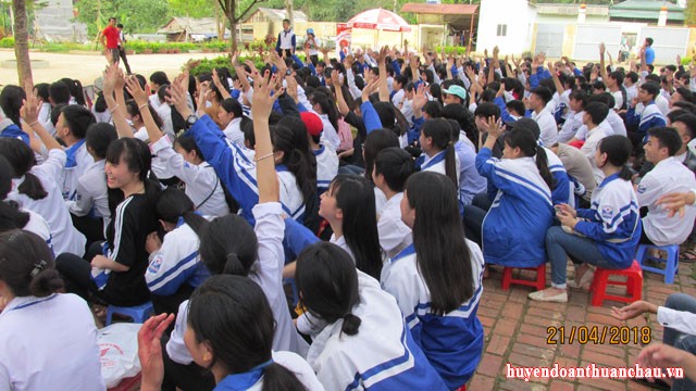 Hưởng ứng Năm ATGT 2018, Nhằm đẩy mạnh các hoạt động tuyên truyền, giáo dục về ý thức chấp hành Luật Giao thông đường bộ trong đoàn viên, thanh thiếu nhi và nhất là các em học sinh đang ngồi trên ghế nhà trường. Ngày 21/4/2018, Ban Thường vụ huyện đoàn đã phối hợp với Hội LHTN Việt Nam tỉnh Sơn La tổ chức “Ngày hội Thanh niên với văn hóa giao thông” tại 02 điểm trường THPT Thuận Châu và THCS Chu Văn An.