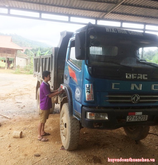 Đồng chí Lò Văn Chanh đang kiểm tra, sửa chữa xe ô tô