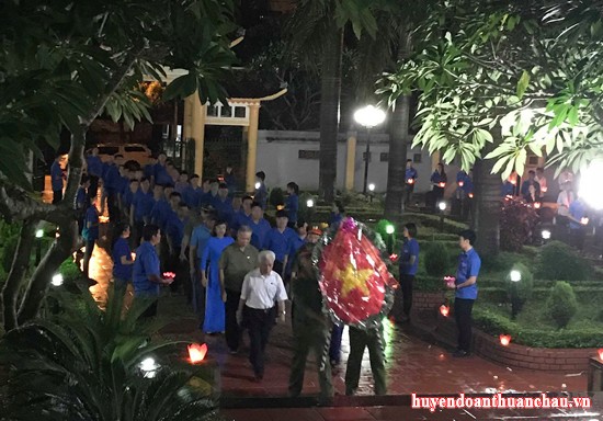 Trong không khí nghiêm trang tại Nghĩa trang liệt sỹ huyện Thuận Châu, các đại biểu và đoàn viên thanh niên đã dâng hoa, thắp hương và dành một phút mặc niệm để bày tỏ lòng thành kính tưởng nhớ và biết ơn vô hạn đối với các anh hùng liệt sỹ đã hy sinh cho sự nghiệp giải phóng dân tộc, xây dựng và bảo vệ tổ quốc. Sau Lễ dâng hương các đồng chí đại biểu cùng đoàn viên thanh niên, các em đội viên đã đến thắp nến tri ân các phần mộ liệt sỹ tại nghĩa trang liệt sỹ huyện.