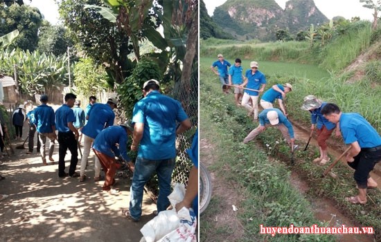 Đoàn xã Chiềng La tham gia dọn vệ sinh, khơi thông mương trên địa bàn xã