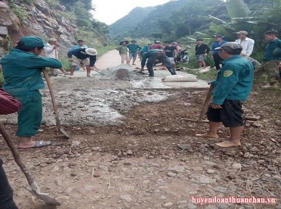 Đoàn viên thanh niên hăng hái tham gia đổ bê tông