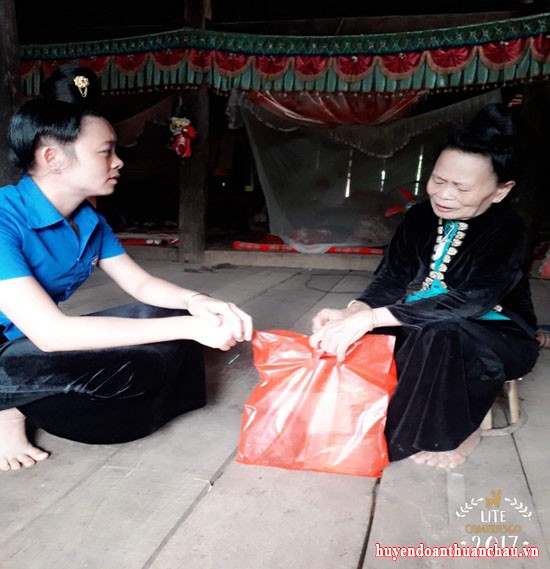 Đồng chí Quàng Thị Hiểu – Bí thư đoàn xã Chiềng La tặng quà cho các gia đình thương binh, liệt sỹ, gia đình có công với cách mạng
