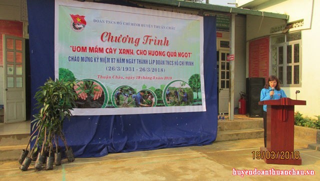 Đồng chí Lường Thùy Dung - Bí thư Huyện Đoàn phát động chương trình trồng cây