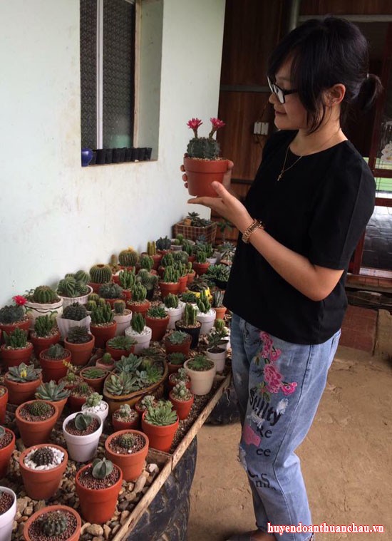 Với không gian không quá rộng chỉ có 100m2, bắt nguồn từ niềm đam mê trồng sen đá xương rồng. Đồng chí nữ cán bộ Đoàn Tòng Thị Tiên –PBT Đoàn xã Phổng Lăng với số vốn ban đầu là 800 nghìn đồng nhập được khoảng 40 chậu cây giống các khác loài. Bằng tình yêu và sự đam mê của mình, sau hơn 1 năm tự nhân giống và nhập thêm 1 số loại xương rồng khác- sen đá ngoại thị hiện nay, tại khu vườn nhỏ của mình, đồng chí đã có hơn 500 chậu cây với hơn 90 loài khác nhau. Ngoài sen đá xương rồng thì đồng chí còn mở rộng và kinh doanh thêm một số chủng loại cây cảnh văn phòng, đồ lưu niệm nhỏ và 1 số loại hoa khác. Hiện nay, thu nhập trung bình từ khu vườn nhỏ của đồng chí được từ 15-18 triệu đồng/ tháng.