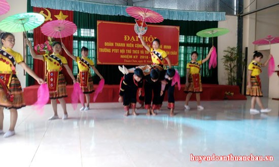 Tiết mục văn nghệ chào mừng đại hội của trường PTDT nội trú THCS-THPT huyện