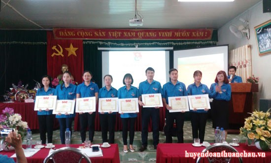 Đồng chí Lường Thùy Dung – Bí thư Huyện đoàn trao tặng giấy khen cho tập thể, các cá nhân có thành tích xuất sắc trong công tác Đoàn và phong trào TTN năm học 2017-2018 tại trường THPT Thuận Châu