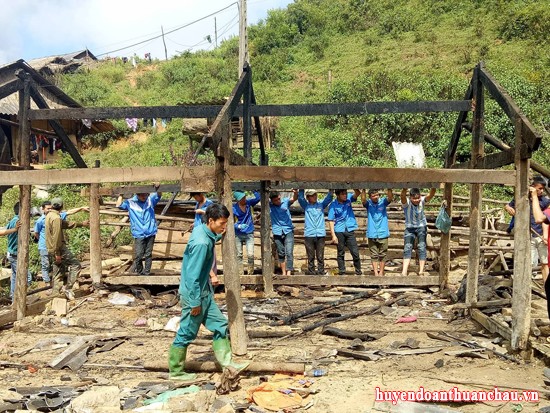 ĐVTN tham gia dựng nhà ở cho bà mẹ đơn thân tại xã Mường É