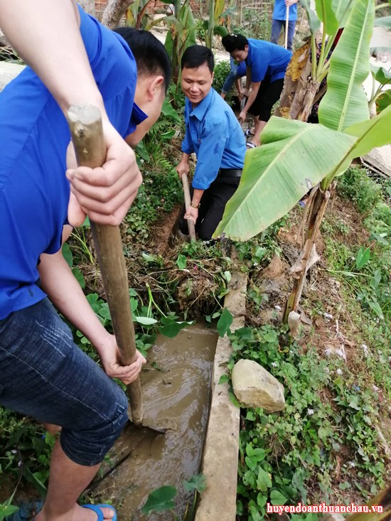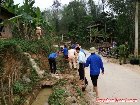 ĐVTN khơi thông cống rãnh tại xã Púng Tra