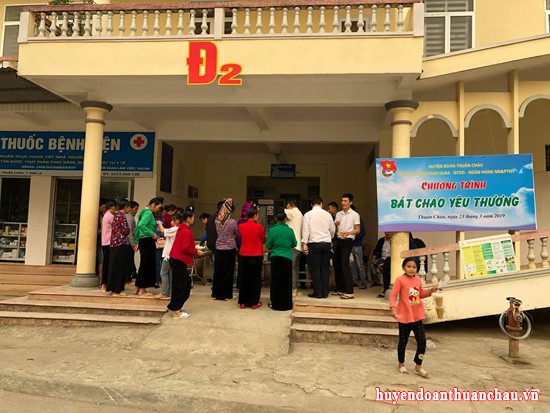 Nhằm thực hiện các hoạt động “An sinh xã hội”; Ban Thường vụ huyện đoàn đã phát động chương trình “Bữa cơm nhân ái” tại bệnh viện Đa khoa huyện Thuận Châu; Tại chương trình đã tổ chức nấu, phát trên 320 suất cơm miễn phí cho bệnh nhân nghèo có hoàn cảnh khó khăn đang điều trị tại Bệnh viện đa khoa huyện thu hút trên 70 ĐVTN tham gia.