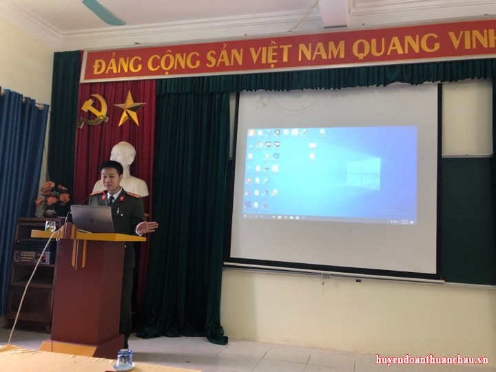 Đồng chí Nguyễn Năng Sơn - Phó Bí thư Đoàn cơ sở Công an huyện tại chương trình tập huấn