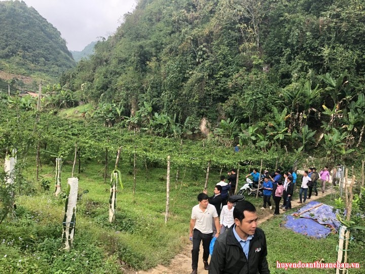Học viên tham quan các mô hình thanh niên làm kinh tế tại xã Chiềng Pha
