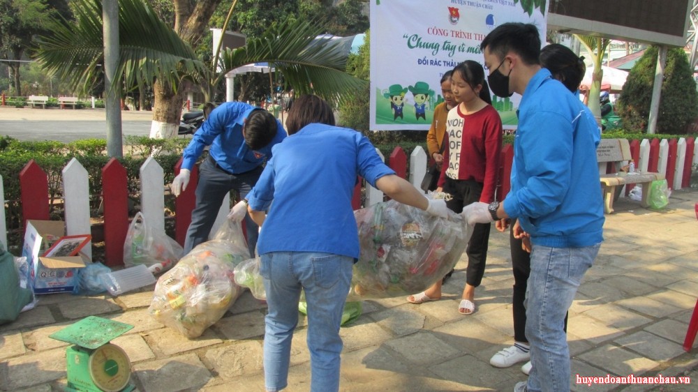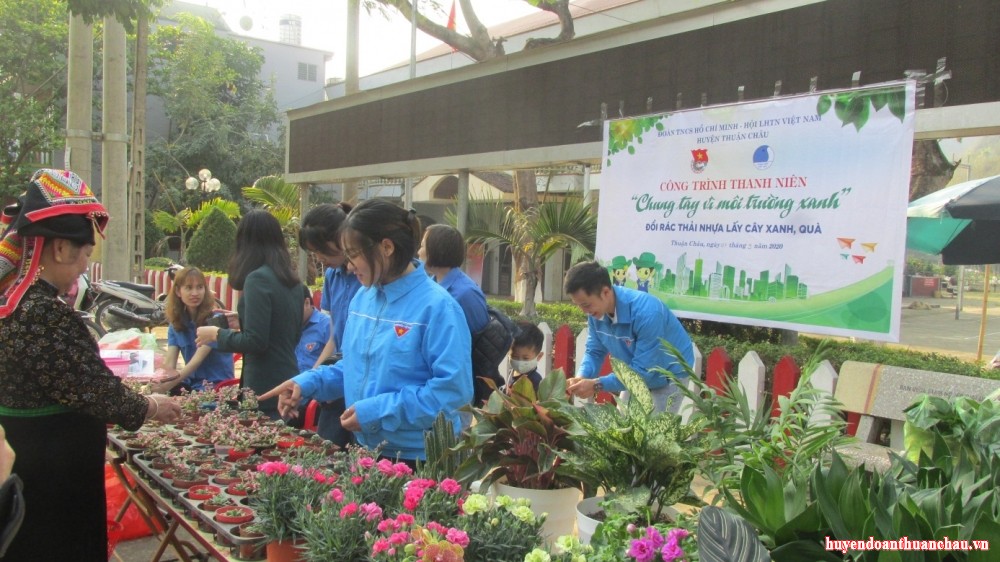 Nhằm nâng cao ý thức của đoàn viên thanh niên và nhân dân về bảo vệ môi trường. Thực hiện Kế hoạch số 66-KH/ĐTN ngày 26/02/2020 của Huyện đoàn Thuận Châu về việc tổ chức các hoạt động tháng thanh niên năm 2020. BTV Huyện đoàn đã thực hiện công trình thanh niên cấp huyện: “ Chung tay vì môi trường xanh – Đổi rác thải nhựa lấy cây xanh, quà” tại sân công viên huyện Thuận Châu.