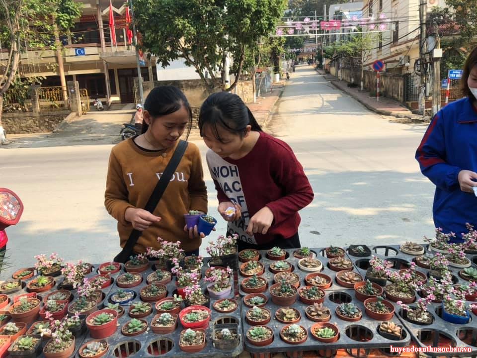 BTV Huyện đoàn đã chuẩn bị trên 200 cây giống với gần 20 loại khác nhau như: xương rồng, sen đá, cẩm nhung…; 30 bình thủy tinh và các phần quà khác nhau.