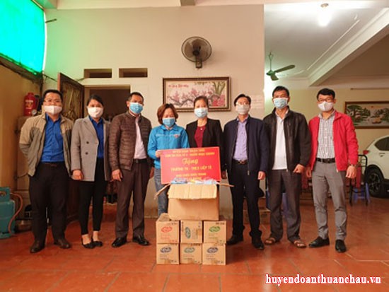 Cụm thi đua số 6 tặng khẩu trang và xà phòng cho học sinh trường TH-THCS Liệp Tè