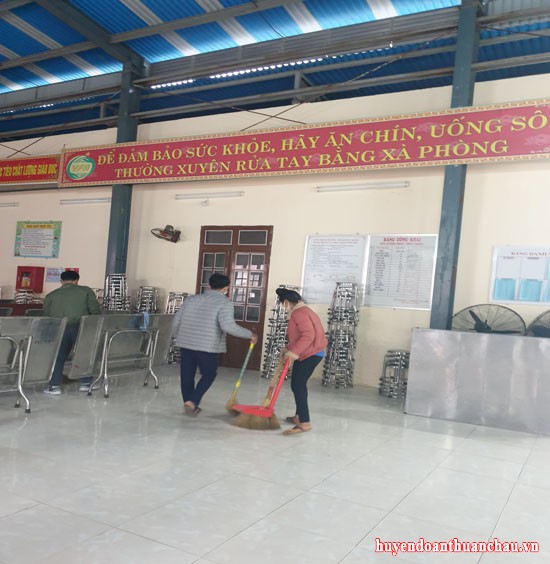 Dọn dẹp tại khu hội trường, bếp ăn và nhà ăn của trường PTDT nội trú THCS và THPT