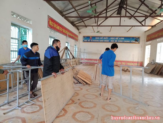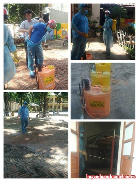 ĐVTN xã Chiềng Pấc phối hợp với trạm y tế, quân sự phun thuốc khử trùng cho các nhà trường tại địa phương
