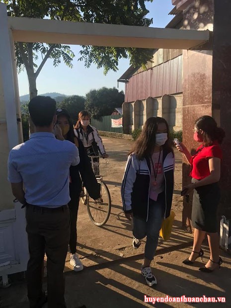 Đoàn trường THPT Bình Thuận kiểm tra thân nhiệt cho học sinh trước khi vào trường