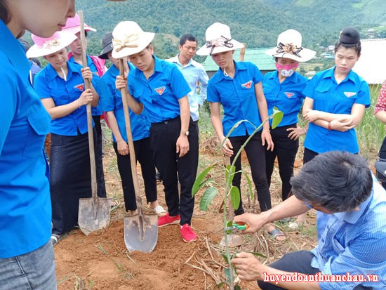 ĐVTN chăm chú nghe phổ biến kỹ thuật trồng cây tại xã Mường Bám