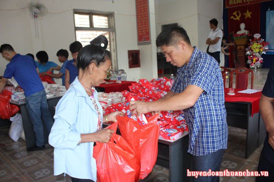 Đ/c Vũ Quang Huy – Bí thư Huyện đoàn, chủ tịch Hội LHTN Việt Nam huyện tặng quà cho bà con dân tộc La Ha tại xã Liệp Tè