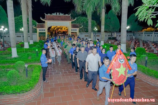 Lễ thắp nến tri ân các anh hùng liệt sĩ được Huyện đoàn Thuận Châu tổ chức hàng năm vào dịp 27/7 nhằm thể hiện đạo lý “Uống nước nhớ nguồn”, “Đền ơn đáp nghĩa” của tuổi trẻ huyện nhà đối với thế hệ cha anh đã hy sinh vì sự nghiệp đấu tranh giải phóng dân tộc, xây dựng và bảo vệ Tổ quốc. Thông qua hoạt động này nhằm giáo dục truyền thống cách mạng, lòng yêu nước, tự hào dân tộc, trách nhiệm của tuổi trẻ trong công cuộc xây dựng và bảo vệ Tổ quốc trong giai đoạn hiện nay. Tuổi trẻ huyện Thuận Châu nguyện luôn tin tưởng và mãi đi theo con đường mà Đảng, Bác Hồ và nhân dân đã lựa chọn; phát huy trí tuệ, tính sáng tạo, mang hết sức trẻ xung kích, tình nguyện, không ngại gian khổ, sẵn sàng đi bất cứ nơi đâu, làm bất cứ việc gì khi Tổ quốc và nhân dân cần, với tinh thần “Đâu cần thanh niên có, việc gì khó có thanh niên”. Tiếp bước cha anh, tuổi trẻ Thuận Châu tích cực thi đua rèn đức luyện tài, luyện tâm trong - rèn trí sáng - xây hoài bão lớn; đồng thời nâng cao ý thức cảnh giác trước các âm mưu của các thế lực thù địch, quyết tâm gìn giữ, xây dựng và bảo vệ quê hương, đất nước ngày càng giàu đẹp, văn minh./.