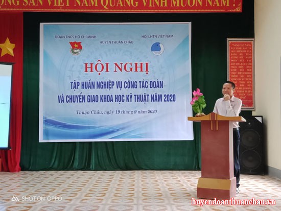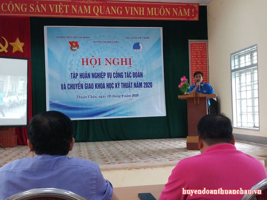 Ngày 19/9, tại xã Long Hẹ, BCH Huyện đoàn Thuận Châu đã phối hợp với Ngân hàng chính sách xã hội huyện, Trung tâm dịch vụ nông nghiệp huyện, Công ty phân bón Sông Gianh và công ty cổ phần bảo vệ thực vật Sài Gòn tổ chức tập huấn nghiệp vụ công tác đoàn và chuyển giao khoa học kỹ thuật cho cán bộ, đoàn viên thanh niên. Dự hội nghị có đ/c Thào A Súa – Phó bí thư thường trực Huyện ủy, đ/c Lò Văn Quý – Chủ tịch hội nông dân huyện và 60 ĐVTN của 06 xã vùng cao.