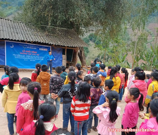 Đ/c Thào A Sinh – Phó bí thư Huyện đoàn phát biểu tại điểm trường Củ Sát – trường tiểu học Mường Khiêng 1