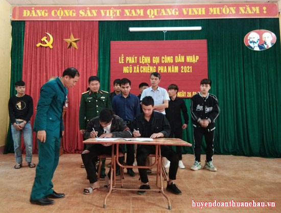 Thực hiện kế hoạch của Hội đồng nghĩa vụ quân sự huyện Thuận Châu về việc phát lệnh gọi công dân nhập ngũ. BTV Huyện đoàn Thuận Châu đã chỉ đạo 29 đoàn các xã, thị trấn phối hợp với các ban ngành đoàn thể địa phương tích cực tuyên truyền nâng cao nhận thức của thanh niên đối với sự nghiệp xây dựng, bảo vệ Tổ quốc, thực hiện nghiêm Luật nghĩa vụ quân sự và tình nguyện lên đường nhập ngũ. Qua lựa chọn, các xã thị trấn trên địa bàn huyện đã chọn được những đoàn viên ưu tú đủ điều kiện làm hồ sơ lên đường nhập ngũ, đảm bảo đúng luật quy định. Tại các xã, thị trấn đã tổ chức tặng quà các đồng chí đoàn viên thanh niên đã xuất ngũ trở về địa phương.