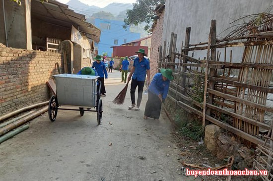 Đoàn xã Chiềng Pấc quét dọn các tuyến đường tại xã