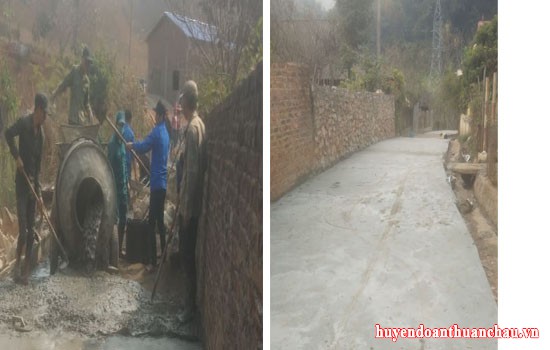 Đoàn xã Chiềng La đổ bê tông tại các tuyến đường liên bản