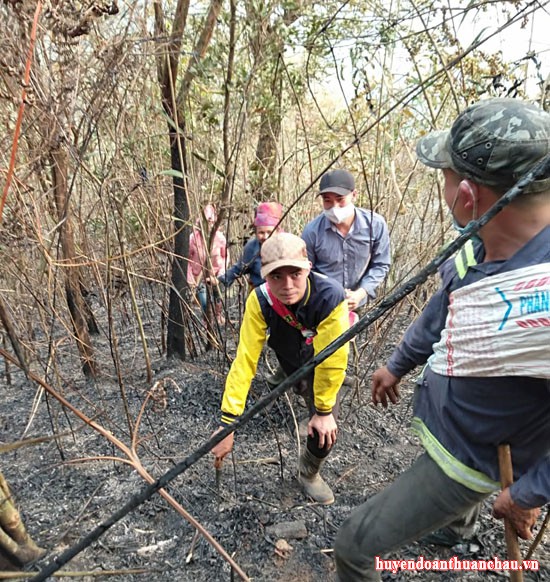 Đoàn viên thanh niên xã É Tòng tham gia chữa cháy rừng