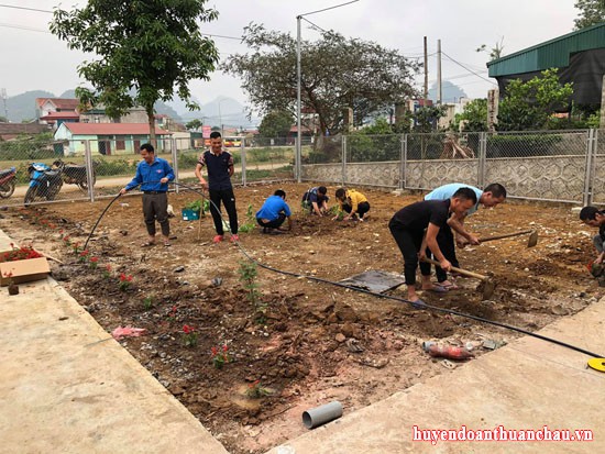 Đoàn xã Phổng Lái trồng hoa ở nhà đa năng