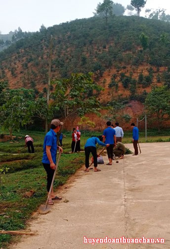 Đoàn xã Bản Lầm phát quang, dọn dep vệ sinh tại UBND xã