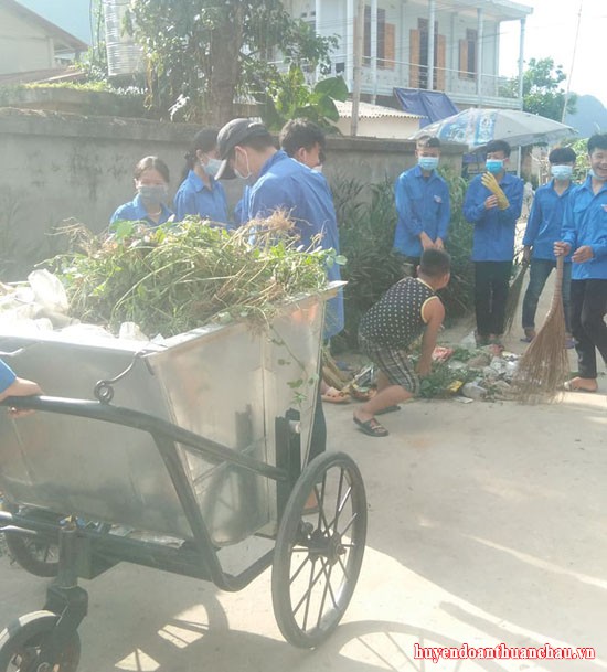 Đoàn xã Chiềng Pấc tổ chức dọn dẹp vệ sinh