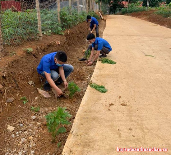 Đoàn xã Phổng Lăng trồng cây triển khai các tuyến đường hoa