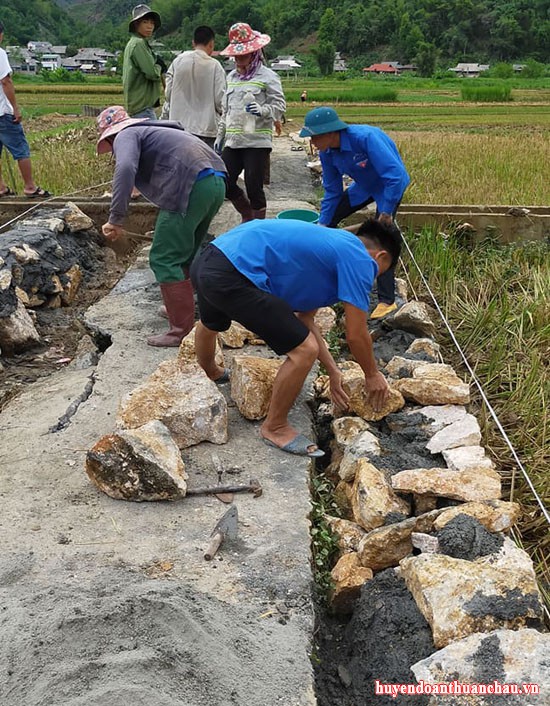 Đoàn xã Tông Cọ huy động đoàn viên, thanh niên tham gia xây dựng kè đường nội đồng