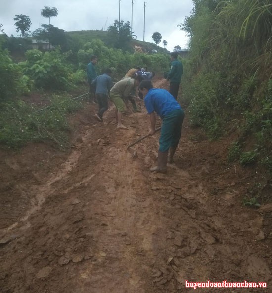 Đoàn xã Co Mạ tổ chức ra quân sửa tuyến đừng vào bản Co Nghè B
