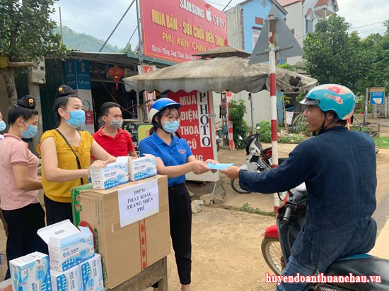 Đoàn xã Phổng Lăng phát khẩu trang miễn phí
