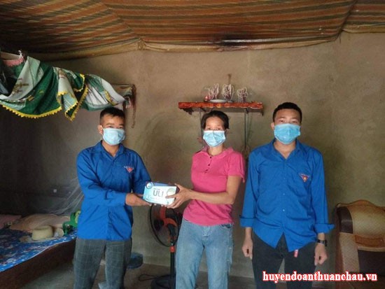 Đoàn xã Muổi Nọi tặng khẩu trang cho gia đình có hoàn cảnh khó khăn trên đia bàn