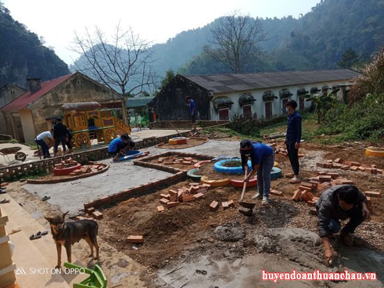 Đoàn viên tham gia làm sân chơi cho thiếu nhi