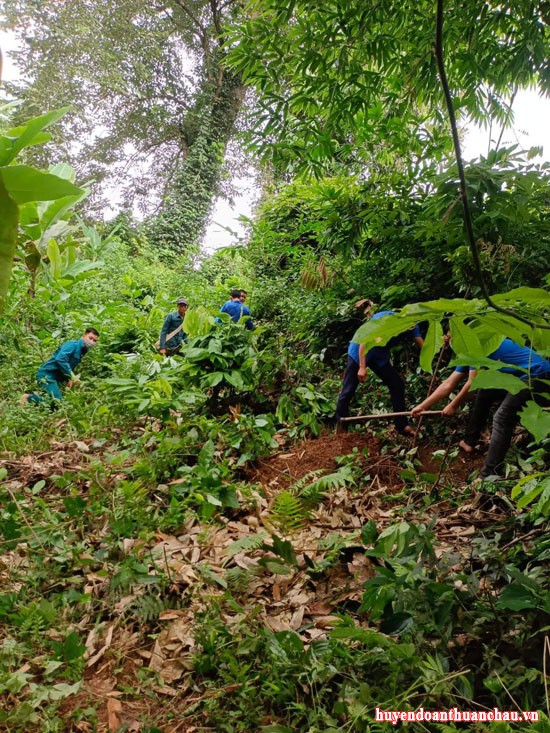 Chi đoàn Kiểm lâm và Đoàn xã chiềng pha trồng cây trên địa bàn xã Chiềng Pha