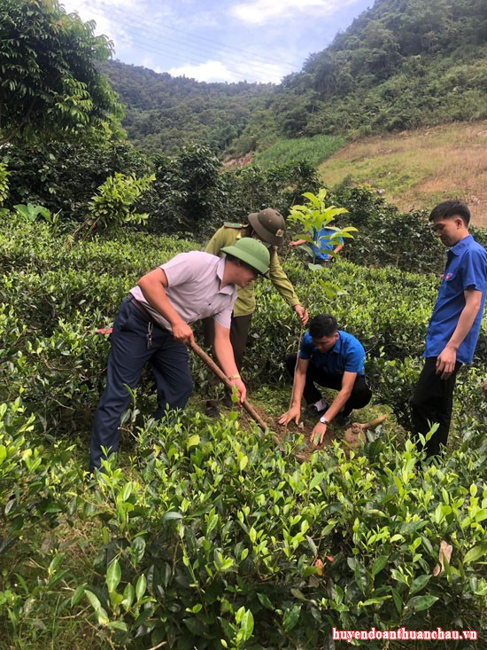 Đoàn viên thanh niên xã Bó Mười hăng hái trồng cây