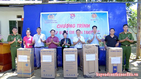 Tại lễ trao quà, Ban tổ chức đã chia sẻ những khó khăn với cơ sở xã Mường Bám. Đồng thời tạo nguồn động viên các cán bộ giáo viên và các em học sinh tiếp bước đến trường và phấn đấu hoàn thành nhiệm vụ trong năm học mới 2022-2023. Nhân dịp này, đoàn đã trao tặng 5 máy lọc nước cho các điểm trường Tiểu học I Mường Bám; Trường Mầm Non trung tâm; điểm trường mầm non Pá Nó ; Điểm trường Mầm non Nậm Ún,; điểm trường Mầm non Pá Sàng. Trao 100 bộ quần áo trẻ em cho các điển trường Tiểu học I ; điểm trường Mầm non Tư Làng. 170 quyển sách và 300 hộp bút sắp màucho điểm trường Mầm Non Mường Bám Thuận Châu với tổng giá trị 35.000.000 triệu đồng.