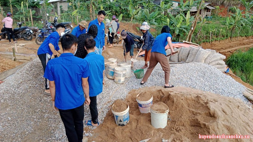 Đoàn xã - UBH xã Chiềng Pha tổ chức đội hình tham gia đào và xây móng, hỗ trợ xây mới ngôi nhà của đoàn viên Lường Văn Tỉnh, là đoàn viên chi đoàn bản Huổi Tát.